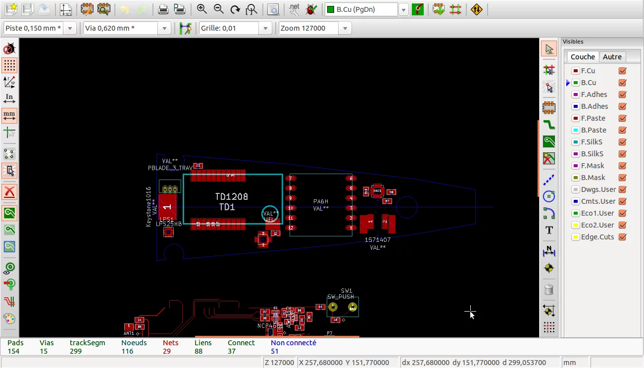 Il y a aussi toutes les contraintes liées à « comment je fais tout rentrer là dedans ? ». Ça non plus, c’est pas une mince affaire. Il faut dessiner en même temps le boîtier et la carte électronique, pour que les deux coïncident.